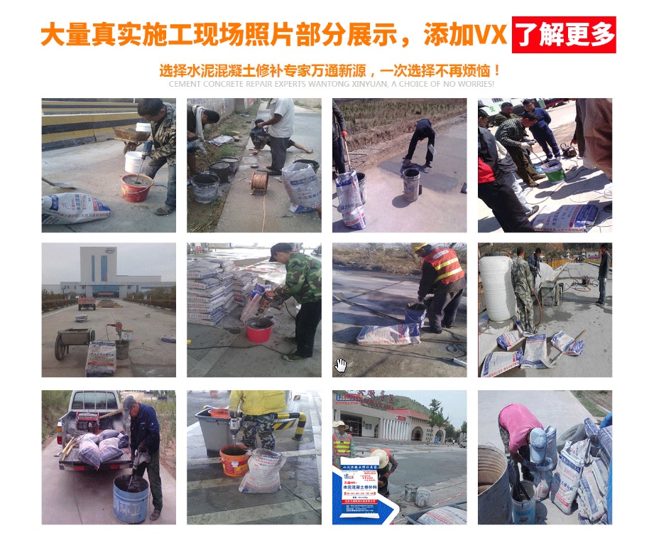 大慶萬通新源科技有限公司獨(dú)有的混凝土路面高強(qiáng)速補(bǔ)料,是水泥混凝土路面病害修復(fù)的好材料。疲勞、凍融循環(huán)、彎曲壓力、滲水和基層破壞等原因都會(huì)引起水泥路面的破損,從而帶來高昂的維護(hù)費(fèi)用。與以往的剛性修補(bǔ)方法不同,混凝土水泥路面維修速補(bǔ)膠提供了一種獨(dú)特的柔性修補(bǔ)產(chǎn)品和技術(shù),高柔性、高抗拉性,可跨伸縮縫施工和高抗壓性使得混凝土快補(bǔ)產(chǎn)品為水泥混凝土路面提供了******性的修補(bǔ)。傳統(tǒng)的剛性修補(bǔ)方案,如環(huán)氧砂漿和快干水泥產(chǎn)品,由于其自身的粘結(jié)失效,抗疲勞性低以及與原路面不同的伸縮系數(shù),修補(bǔ)面會(huì)在短時(shí)間內(nèi)失效或產(chǎn)生新的裂縫,需要反復(fù)修補(bǔ),有效期短且費(fèi)用高昂。大慶萬通新源科技有限公司的混凝土水泥路面維修速補(bǔ)膠可以隨原路面一起伸縮,移動(dòng),從而避免了粘結(jié)失效和產(chǎn)生新裂縫。萬通快補(bǔ)產(chǎn)品優(yōu)異的粘結(jié)性、柔韌性和高防滑性,特別適用于水泥路面的淺層粘合修補(bǔ),多邊角混凝土板層修補(bǔ),跨伸縮縫修補(bǔ)以及路面沉陷修補(bǔ)。萬通混凝土病害修補(bǔ)料針對(duì)混凝土起皮起沙、斷板裂縫、蜂窩麻面、坑槽露石子、漏筋掉皮、橋梁的掉皮漏筋快速通車使用時(shí)間長。應(yīng)用萬通快補(bǔ)產(chǎn)品,施工后一天就可以恢復(fù)交通。大慶萬通新源科技有限公司的萬通水泥路面維修速補(bǔ)膠適用于高速公路、機(jī)場(chǎng)路面、農(nóng)村村村通路面、廠坪、學(xué)校操場(chǎng)、市區(qū)公路、小區(qū)路面、橋梁、水泥路面的修補(bǔ)。使用萬通特快補(bǔ)材料修補(bǔ)路面可以一勞永逸! 水泥地面起砂怎么辦,混凝土修補(bǔ)劑混凝土地面起砂,混凝土地面修補(bǔ),地面起砂怎么辦,